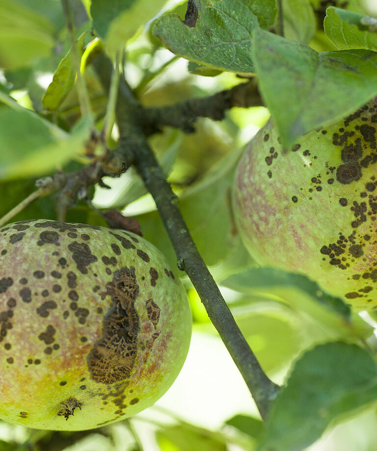 Venturia inaequalis는 감염된 낙엽 또는 잔가지의 병반 내에서 미성숙 자실체의 형태로 월동합니다. 미성숙 자실체 또는 가짜 자낭각은 겨울 동안 성숙하여 자낭포자를 형성합니다. 온도에 따라, 이러한 자낭포자가 성숙하며 젖게되면 방출됩니다. 자낭포자는 바람으로 인해 유실수로 확산되고 물이 있으면 발아합니다. 자낭포자는 각피에 직접 침투하여 식물을 감염시킨 다음, 식물 세포의 각피와 표피 사이에서 성장합니다. 이 경우 병반을 유발하며, 이 병반에서 분생포자를 운반하는 구조인 분생자병이 형성되고 각피를 통해 확장됩니다. 무성분생포자가 방출되어 다른 식물 부분의 감염 주기 및 포자 생산 과정이 반복됩니다. 가을에, 이 균류는 낙엽에서 가짜 자낭각을 형성합니다.