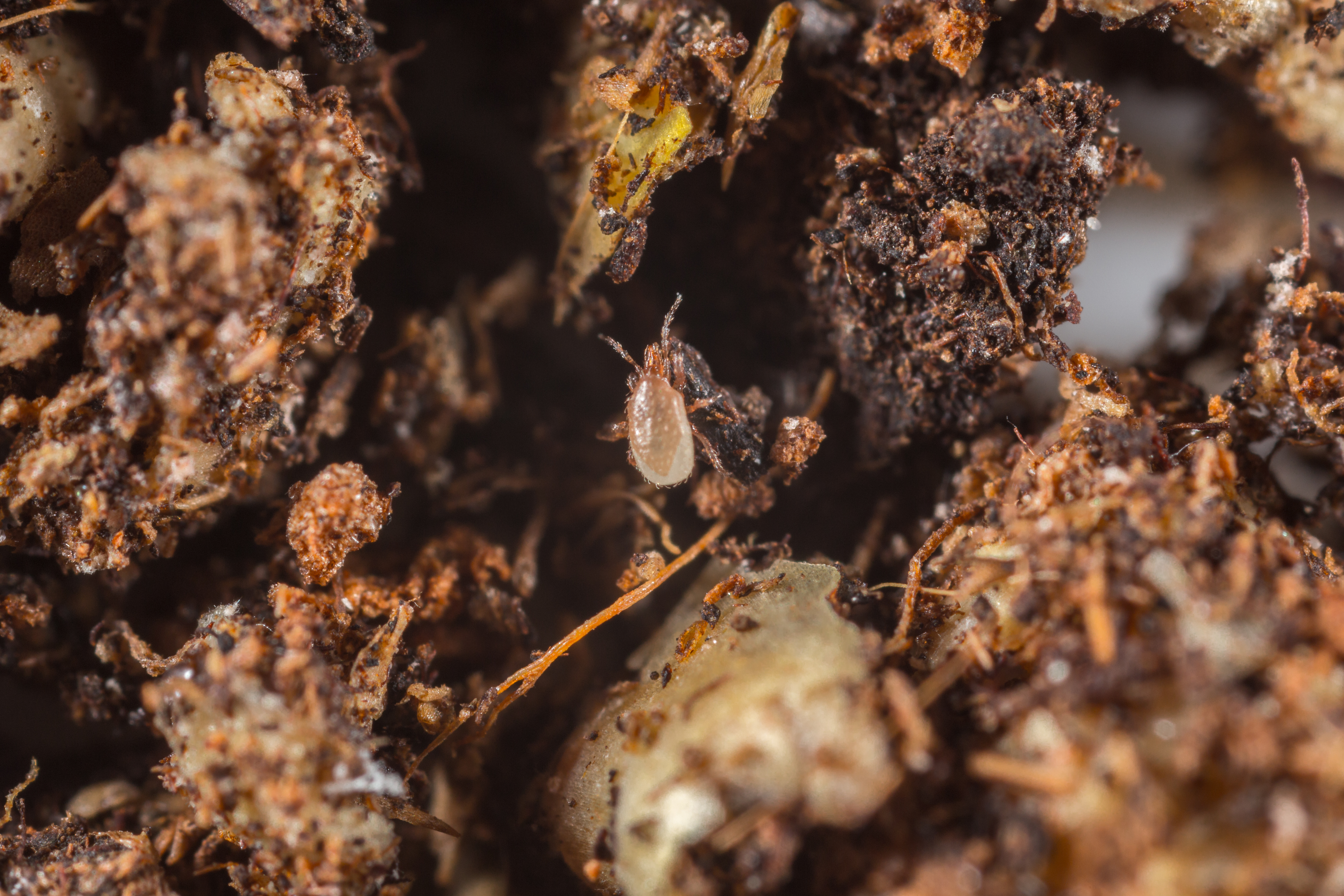 포식성 응애는 검정날개버섯파리, 총채벌레 번데기 및 그 외 토양 서식 곤충의 유충을 먹이로 삼습니다. 응애는 토양과 식물 줄기 기저부에 나타납니다. 병충해는 느리지만 안정적인 속도로 감소합니다.