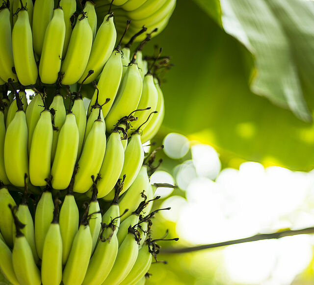바나나는 Musa속에 속한 다양한 대형 초본 현화 식물에서 자라는 영양이 풍부한 과일입니다. 식물학적으로 바나나 열매는 장과에 해당하며 다양한 색상, 크기 및 단단함을 가지고 있습니다. 바나나는 대부분 길쭉한 곡선의 형태를 지니고 있습니다. 과육은 부드럽고 녹말이 풍부하며 과피(보통 벗기기 쉬움)는 녹색 또는 노란색이거나 잘 익은 경우 빨간색, 보라색 또는 갈색인 경우도 있습니다. 바나나는 나무 위에서부터 아래로 자랍니다. 요즘에는 거의 모든 식용의 씨 없는(무식화) 바나나는 Musa acuminata 및 Musa balbisiana의 두 가지 다른 야생 종에서만 유래합니다. 요리에 사용되는 바나나는 디저트 바나나와 달리 플랜틴이라고도 부릅니다.