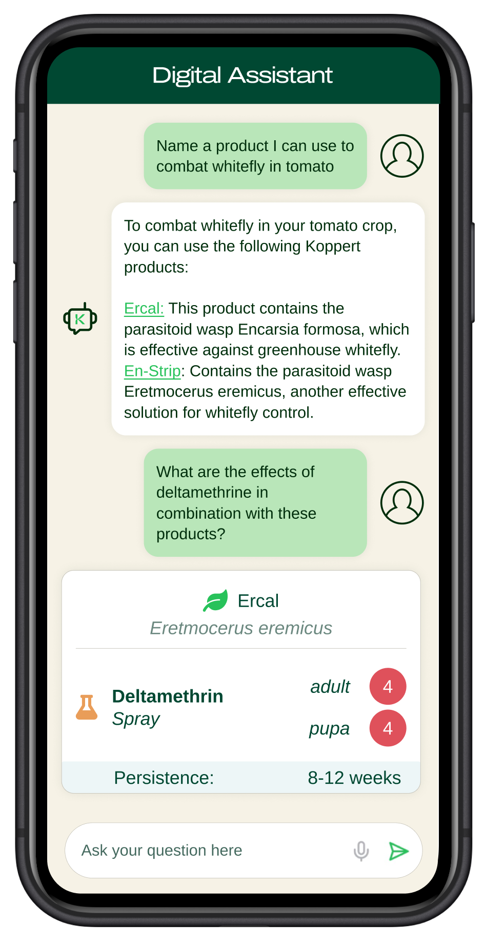 농약은 천적과 수분 매개자에게 직간접적인 영향을 미칠 수 있습니다. 농약 부작용 앱은 알이나 번데기들의 폐사나 발육 장애와 같은 직접적인 영향뿐만 아니라 생식력 감소(산란), 탈피 문제, 기피 효과와 같은 간접적인 영향을 모두 고려하여 다양한 농약의 유해성을 정확하게 평가합니다.