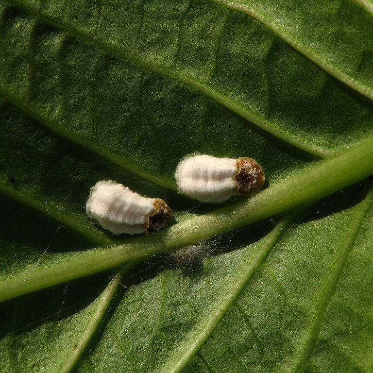 실외 재배지에서는, 암컷이 눈에 띄는 난포를 생산하는 초여름에 솜깍지벌레(Pulvinaria) 종을 가장 쉽게 볼 수 있습니다..